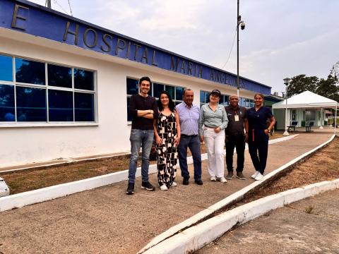 El equipo UNAL, La Asesora Salud de despacho de Putumayo y el Gerente y Subgerente de la ESE Hospital Maria Angelines en Puerto Leguízamo, Putumayo.